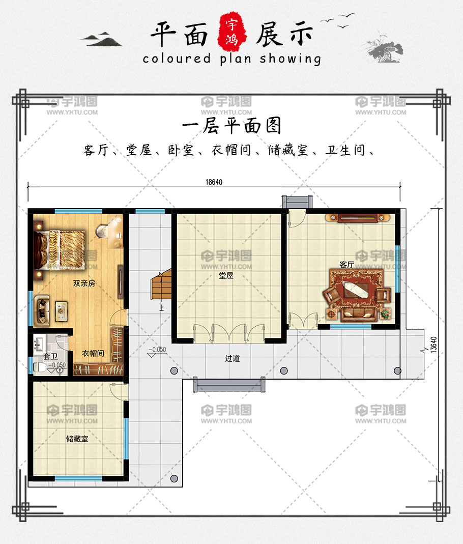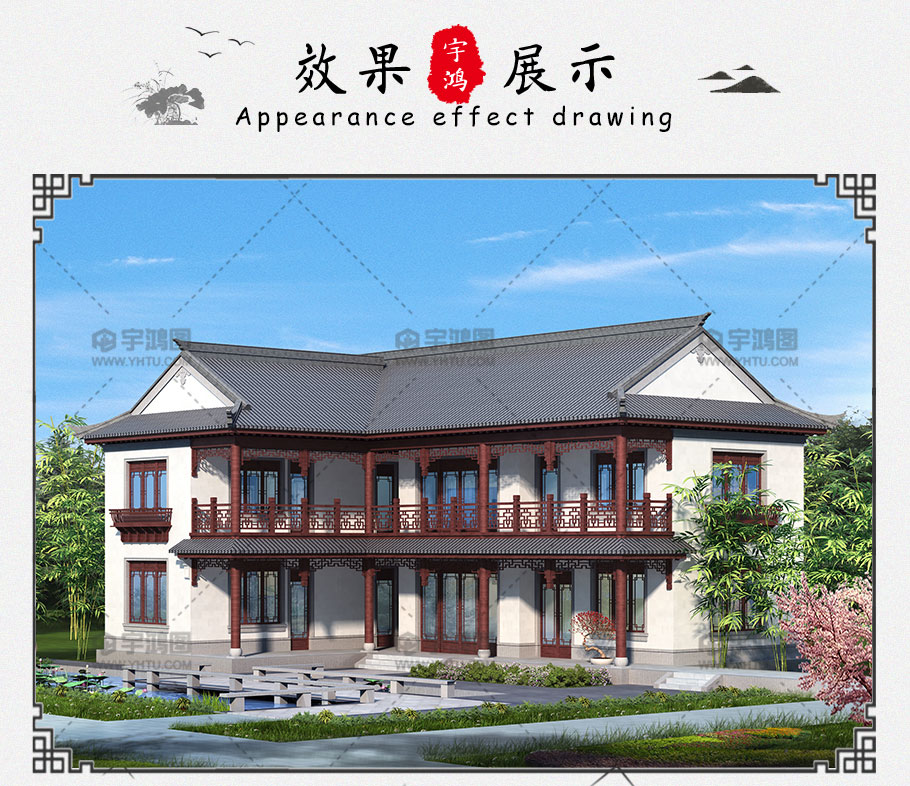 成品圖紙>造價25萬帶堂屋古典優雅中式別墅設計圖紙及效果圖