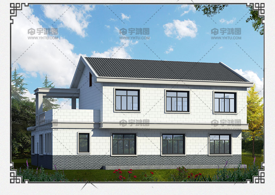 帶柴火房二層中式農村房屋設計圖,設有堂屋和神龕。一層東南角設有12.3平方米柴火房,從堂口前方進入帶神龕的獨立堂屋,堂口右側連接客廳,老人房位于客廳上方,儲物間東側與老人房相連,又與北側走廊相連。堂屋左側有一個娛樂室和臥室。客廳右側有16平米廚房餐廳通間,還有淋浴間和公衛。二層有3個臥室,一個客廳,一個書房,一個儲物間。外帶一個蓄水池,35.2平米大陽臺和16.6平方米露臺,此款是農村人鐘愛的戶型設計圖。