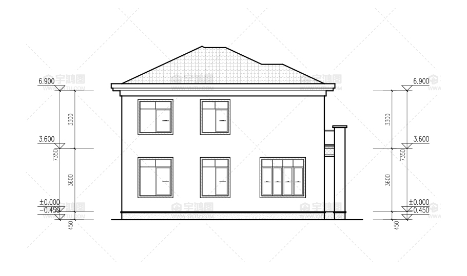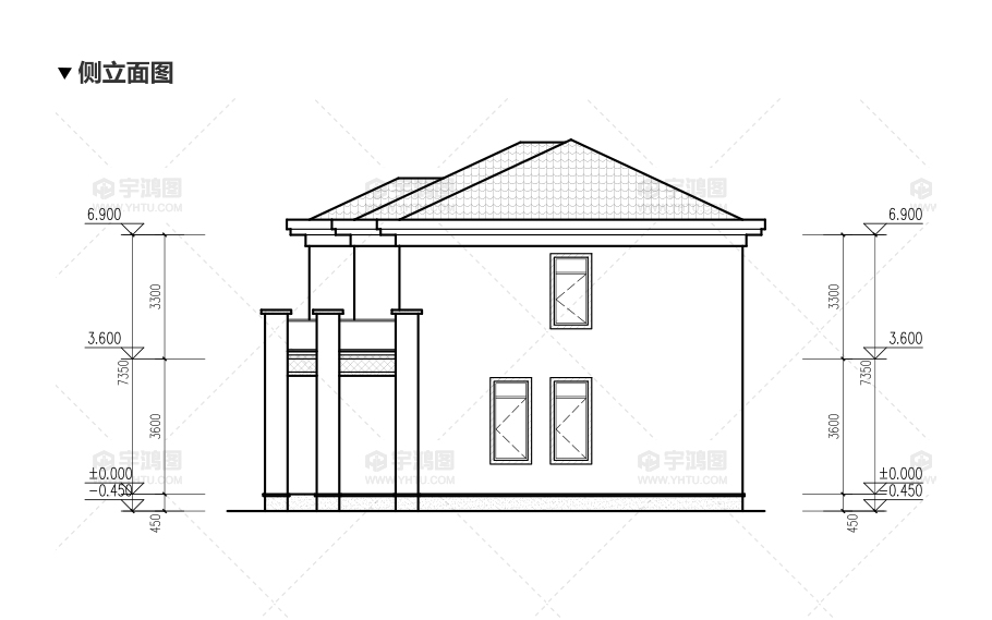 風格:歐式 | 層數:二層 | 結構形式:磚混結構 | 圖紙編號:YH-A-2085 |
