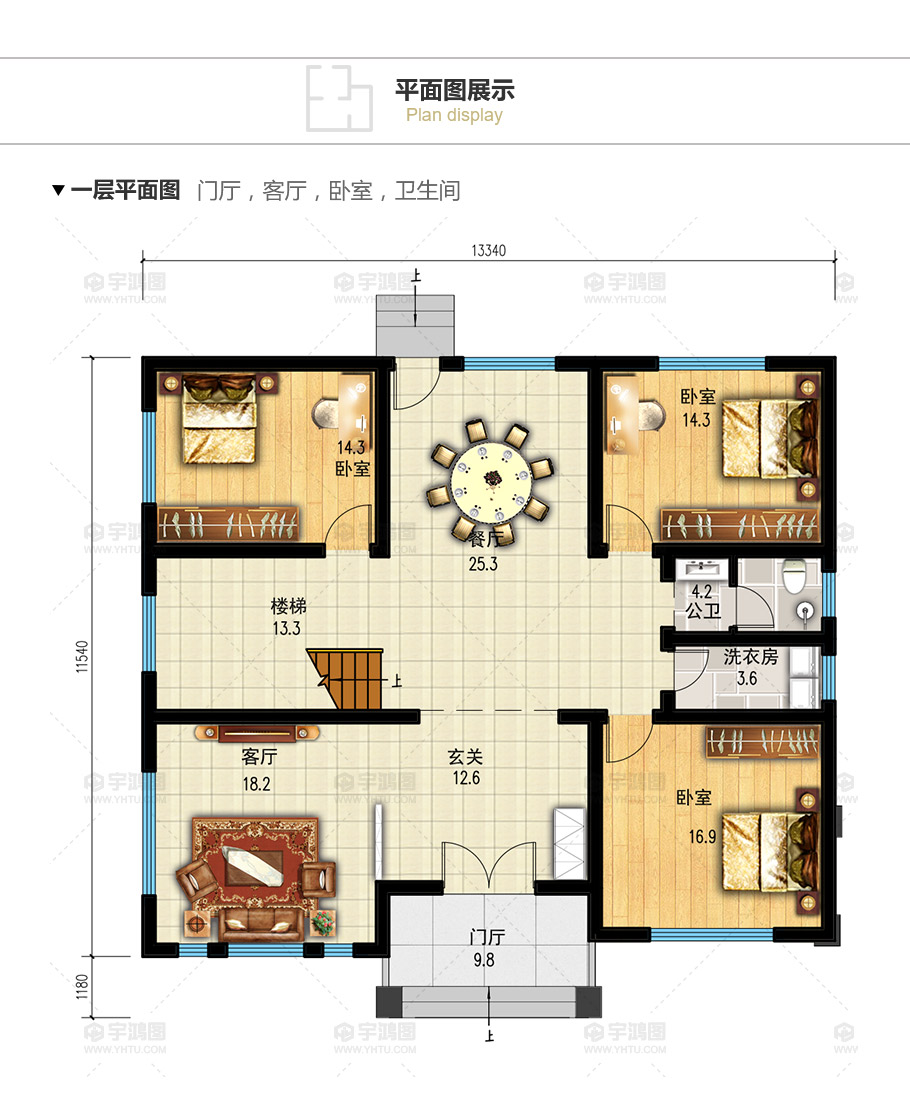 開間:13.34米 | 進深:12.72米 | 占地面積:147.9平方米 | 建筑面積:291平方米 |