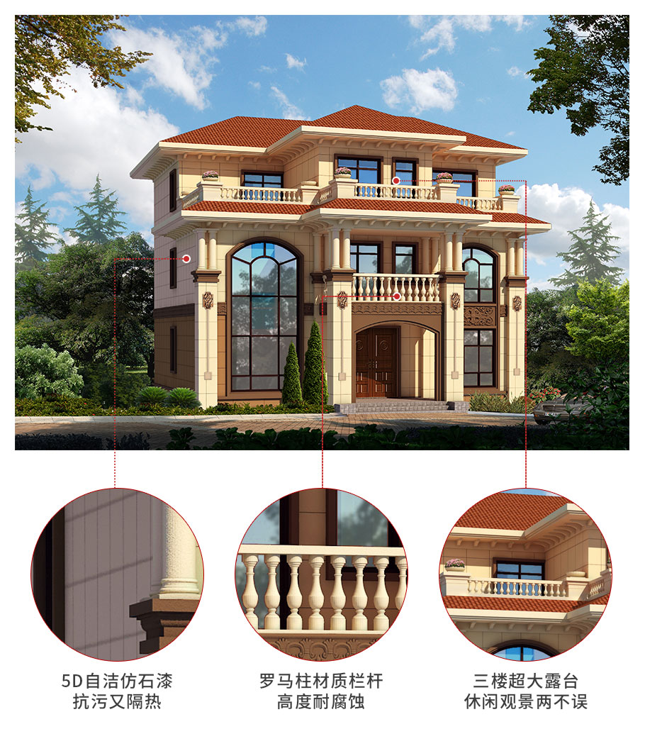 三層歐式漂亮農村自建復式小別墅設計圖,大氣又美觀的三層別墅,到處散發出他的貴氣。靈動空間設計,廣闊觀景視野。每層均有衛生間,衛生間均為帶窗明衛。臥室采光較好,衛生間廚房分離,互不干涉。廚房與衛生間相隔,做到干濕分明。 餐廳和客廳一體,空間感覺通達。超寬觀景陽臺露臺,盡攬上層人生景致,緊連起居室,空間運用更自由。