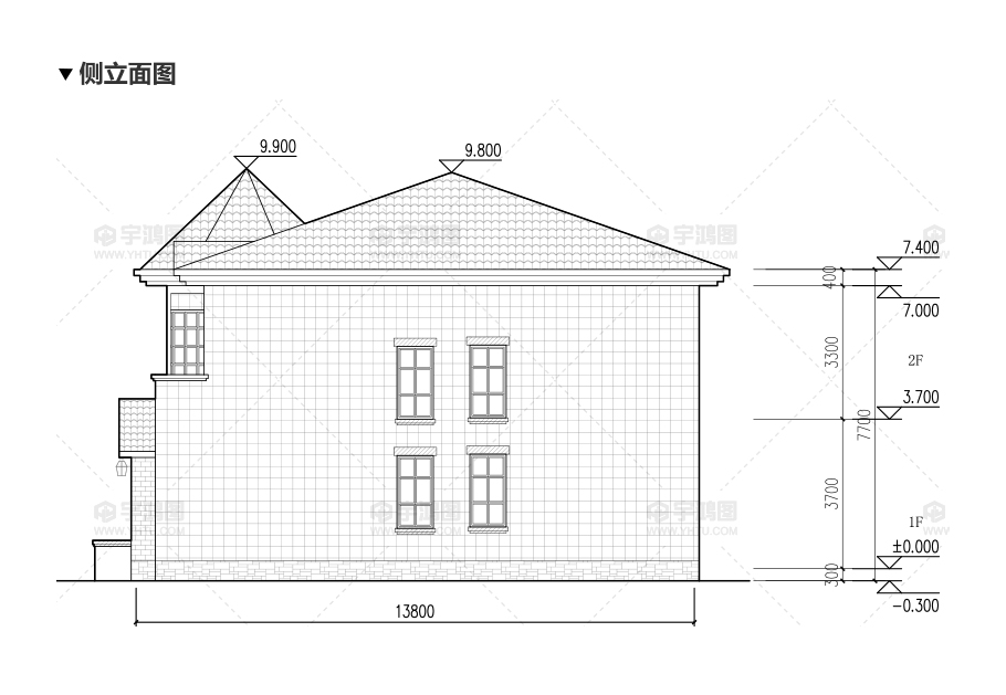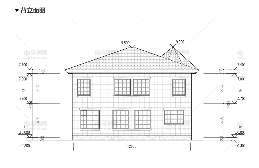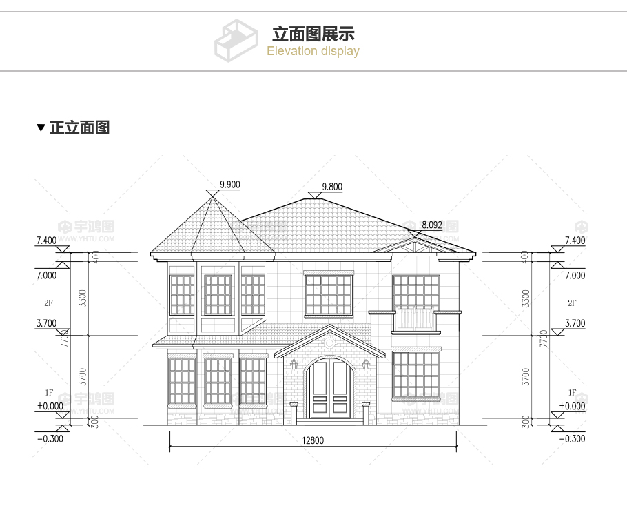 建筑立面圖:東立面圖,西立面圖,南立面圖,北立面圖,剖面圖;