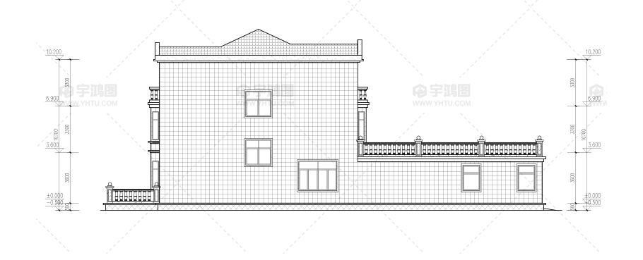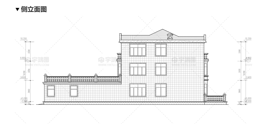 建筑立面圖:東立面圖,西立面圖,南立面圖,北立面圖,剖面圖;