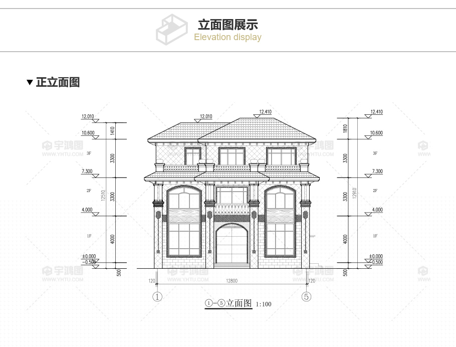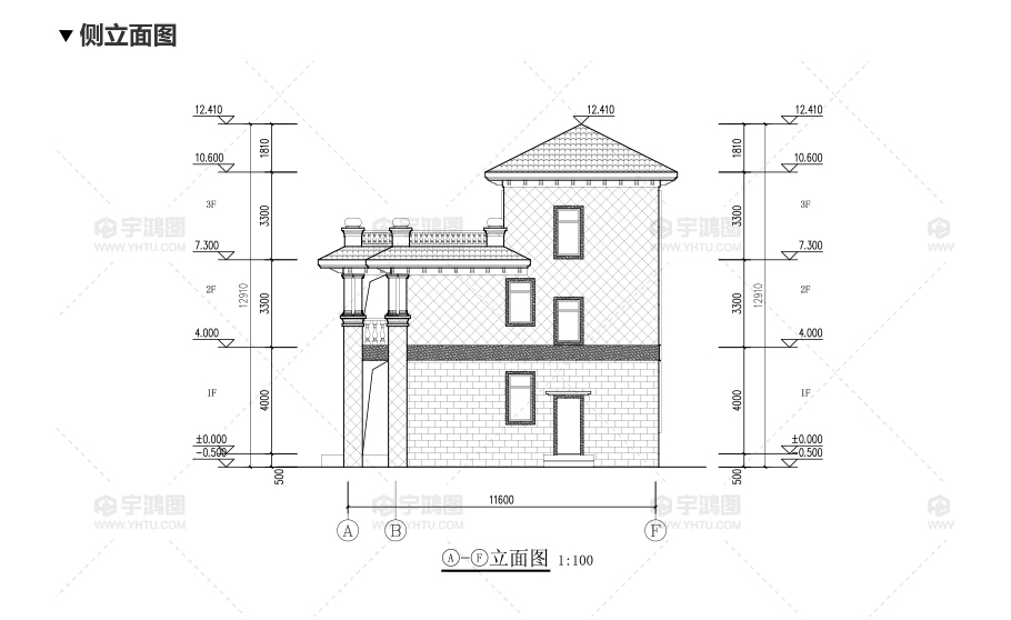風格:歐式 | 層數:三層 | 結構形式:磚混結構 | 圖紙編號:YH-A-3031 |
