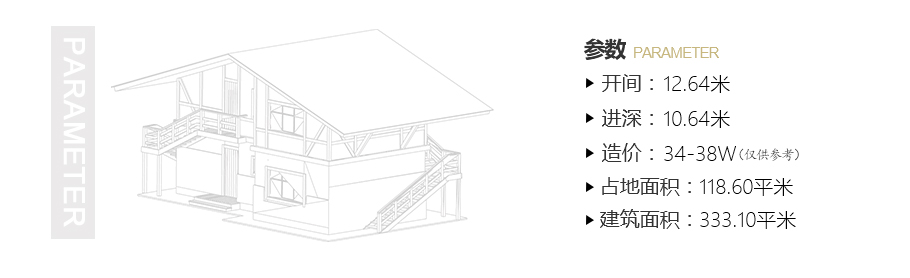 開間:12.64米 | 進深:10.64米 | 占地面積:118.6平方米 | 建筑面積:333.1平方米 |