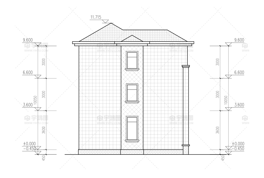 風格:歐式 | 層數:三層 | 結構形式:框架結構 | 圖紙編號:YH-A-3087 |
