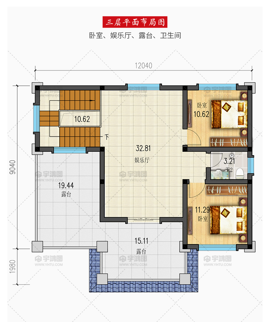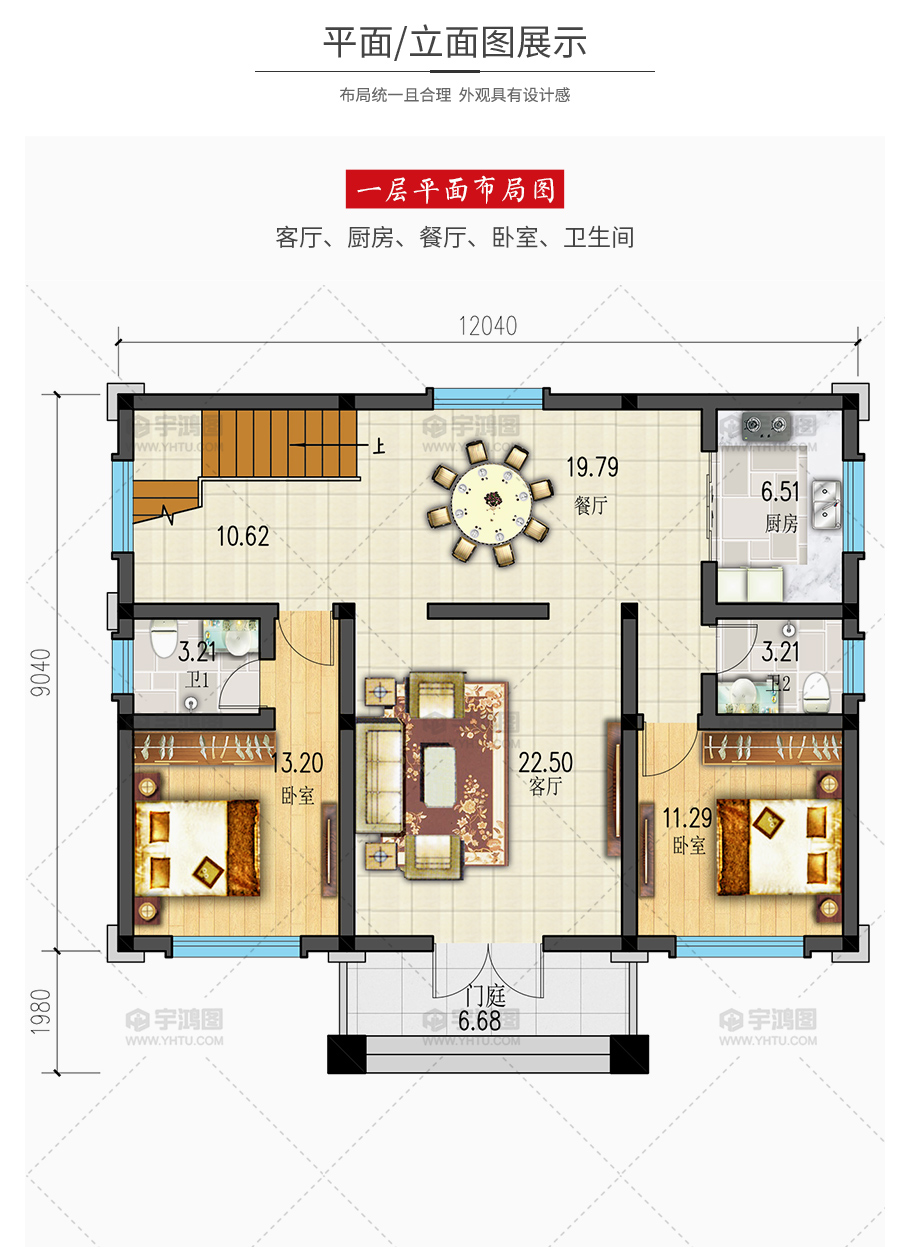 開間:12.04米 | 進深:11.02米 | 占地面積:108.8平方米 | 建筑面積:300.18平方米 |