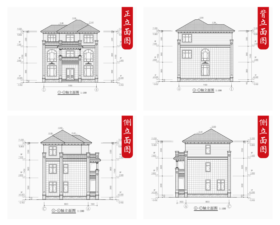 建筑圖: | 建筑平面圖:一層平面圖,二層平面圖,三層平面圖; 建筑立面圖:東立面圖,西立面圖,南立面圖,北立面圖,剖面圖; 大樣圖:樓梯詳圖,細部大樣,門窗大樣 |