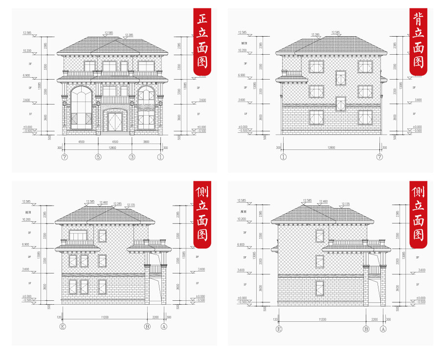 建筑圖: | 建筑平面圖:一層平面圖,二層平面圖,三層平面圖; 建筑立面圖:東立面圖,西立面圖,南立面圖,北立面圖,剖面圖; 大樣圖:樓梯詳圖,細部大樣,門窗大樣 |