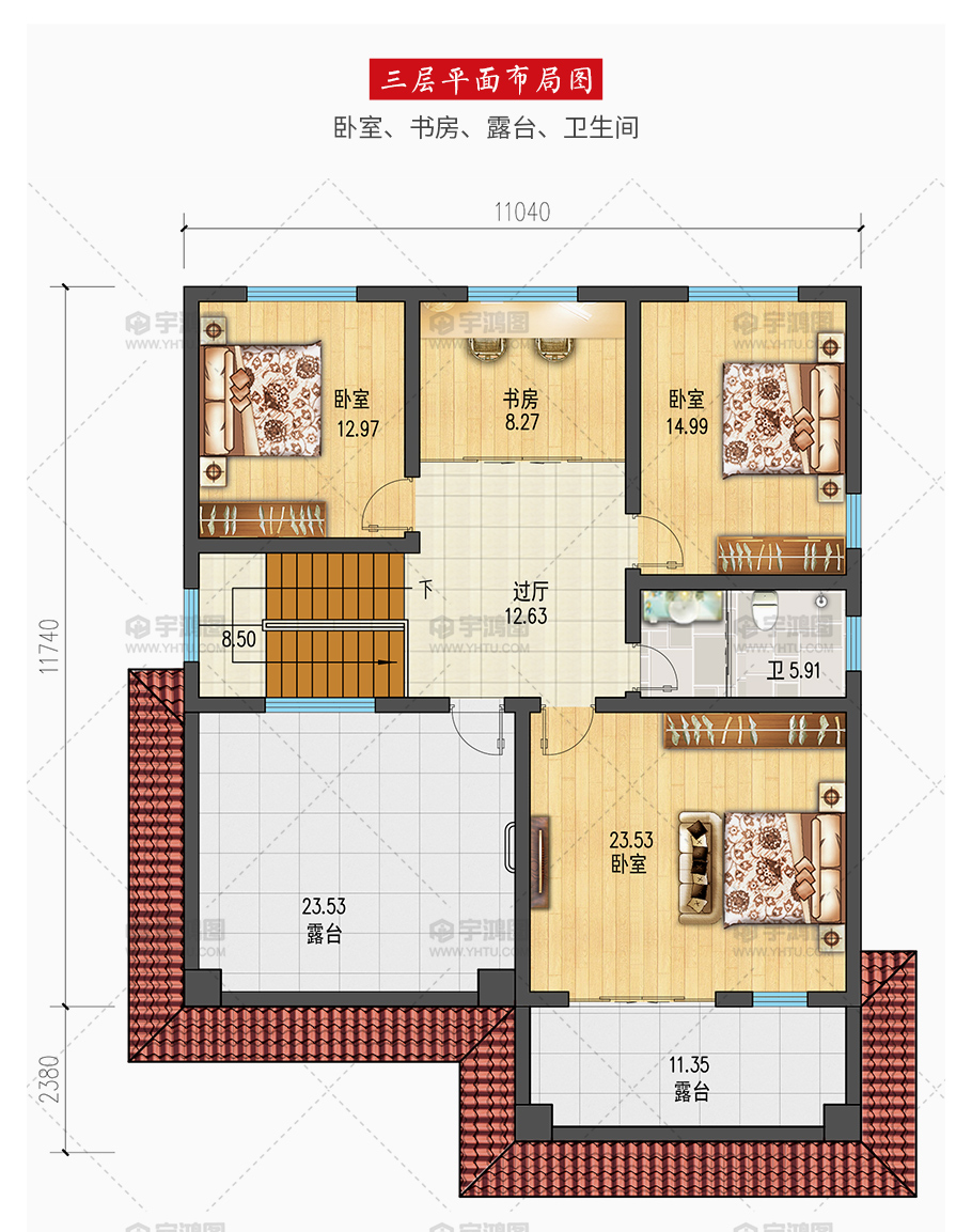 開間:11.04米 | 進深:14.12米 | 占地面積:129.6平方米 | 建筑面積:352.29平方米 |