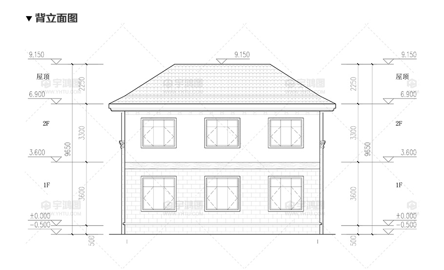 建筑立面圖:東立面圖,西立面圖,南立面圖,北立面圖,剖面圖;