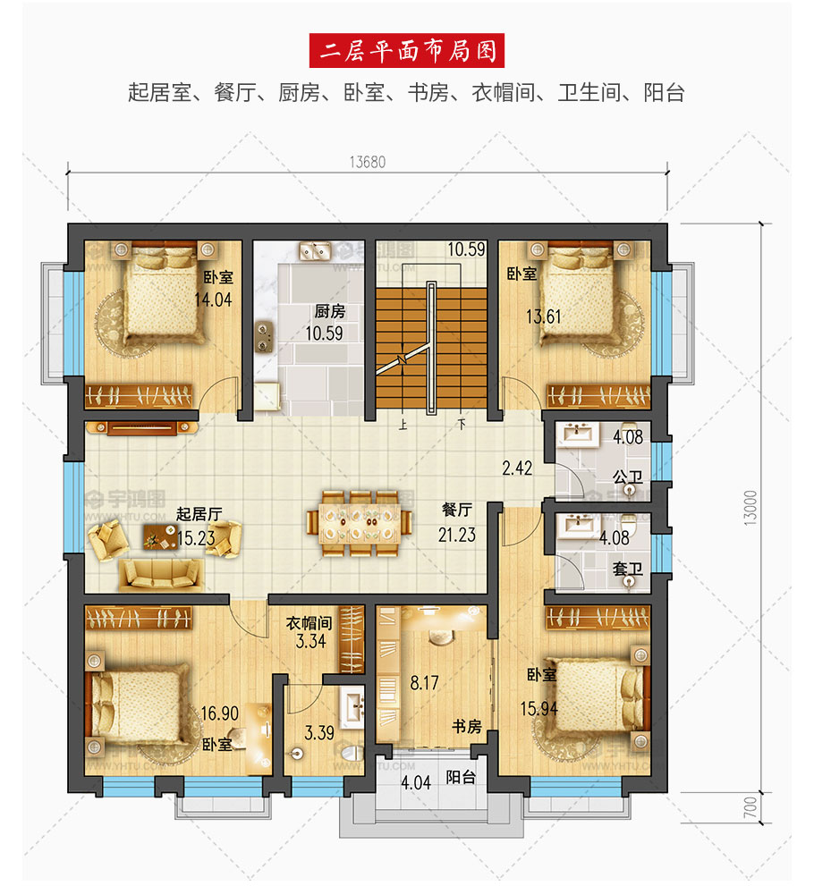 開間:13.68米 | 進深:13.7米 | 占地面積:173平方米 | 建筑面積:354.3平方米 |