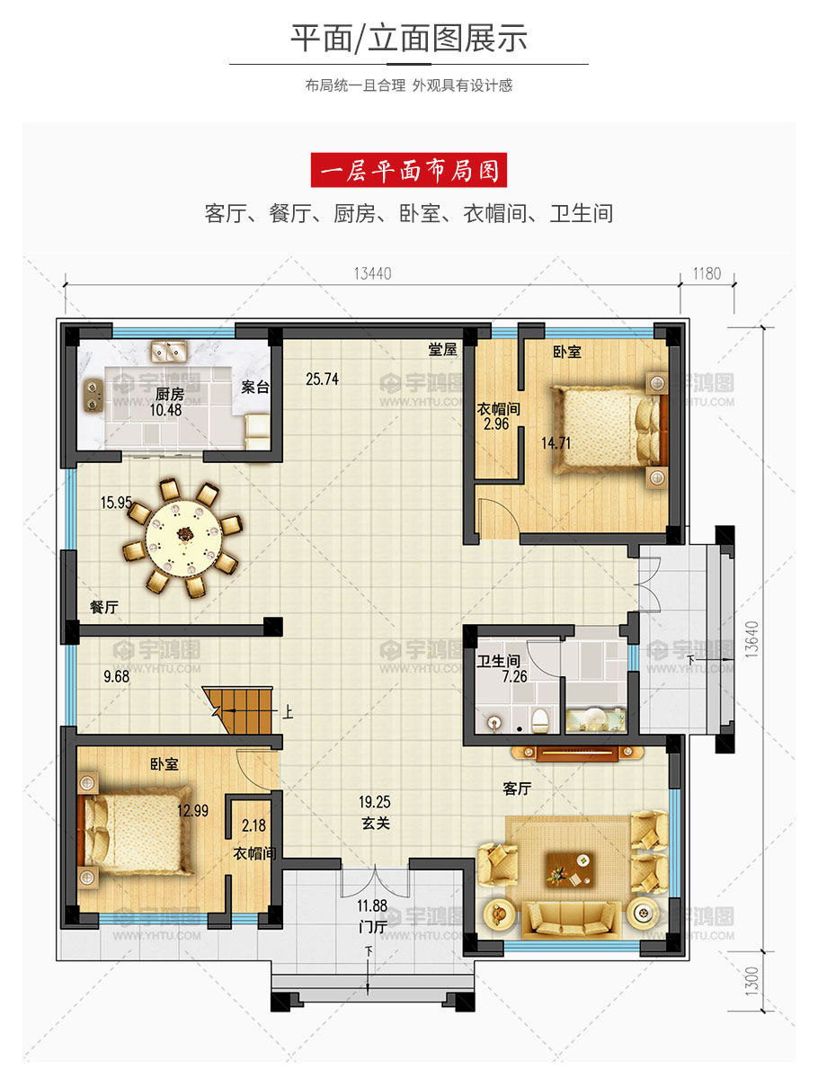 開間:14.62米 | 進深:14.94米 | 占地面積:169.6平方米 | 建筑面積:315.26平方米 |