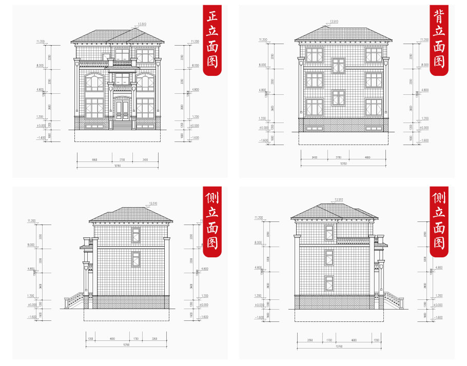 建筑圖: | 建筑平面圖:一層平面圖,二層平面圖,三層平面圖; 建筑立面圖:東立面圖,西立面圖,南立面圖,北立面圖,剖面圖; 大樣圖:樓梯詳圖,細部大樣,門窗大樣 |
