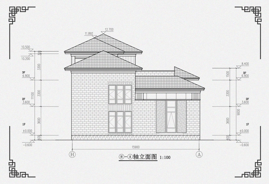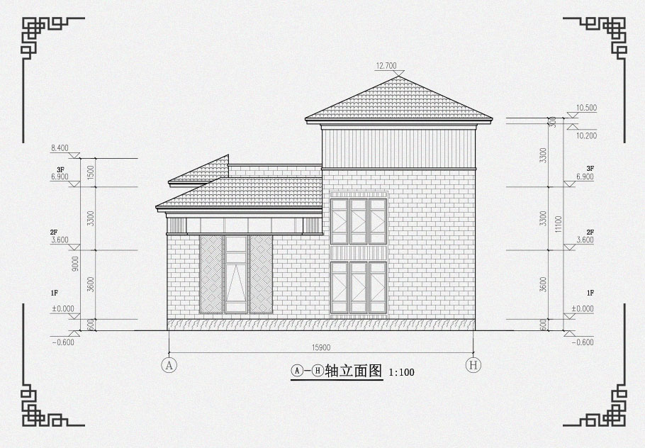結構圖: | 柱施工圖:基礎平面圖,一層柱平面圖,二層柱平面圖,屋頂柱平面圖; 梁施工圖:一層梁平法施工圖,二層梁平法施工圖,頂層梁平法施工圖; 板施工圖:層板平法施工圖,二層板平法施工圖,屋頂層板平法施工圖 詳圖:樓梯平面,樓梯剖面圖; 其他:坡屋面施工說明圖一,坡屋面施工說明圖二 |