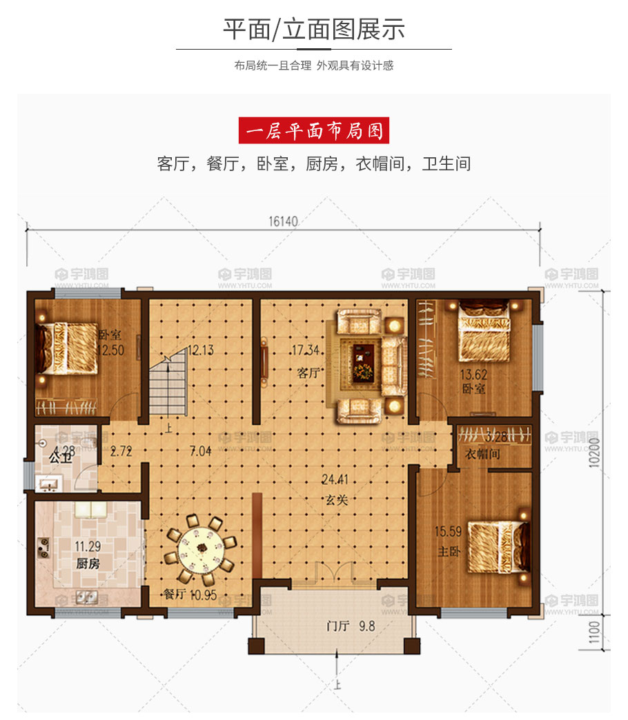 開間:16.14米 | 進深:11.3米 | 占地面積:160.4平方米 | 建筑面積:293平方米 |