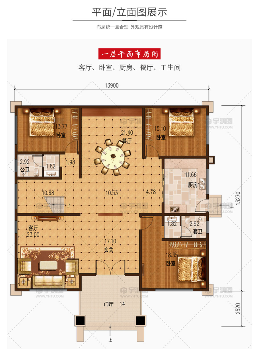 開間:13.9米 | 進深:15.79米 | 占地面積:184.5平方米 | 建筑面積:715.4平方米 |