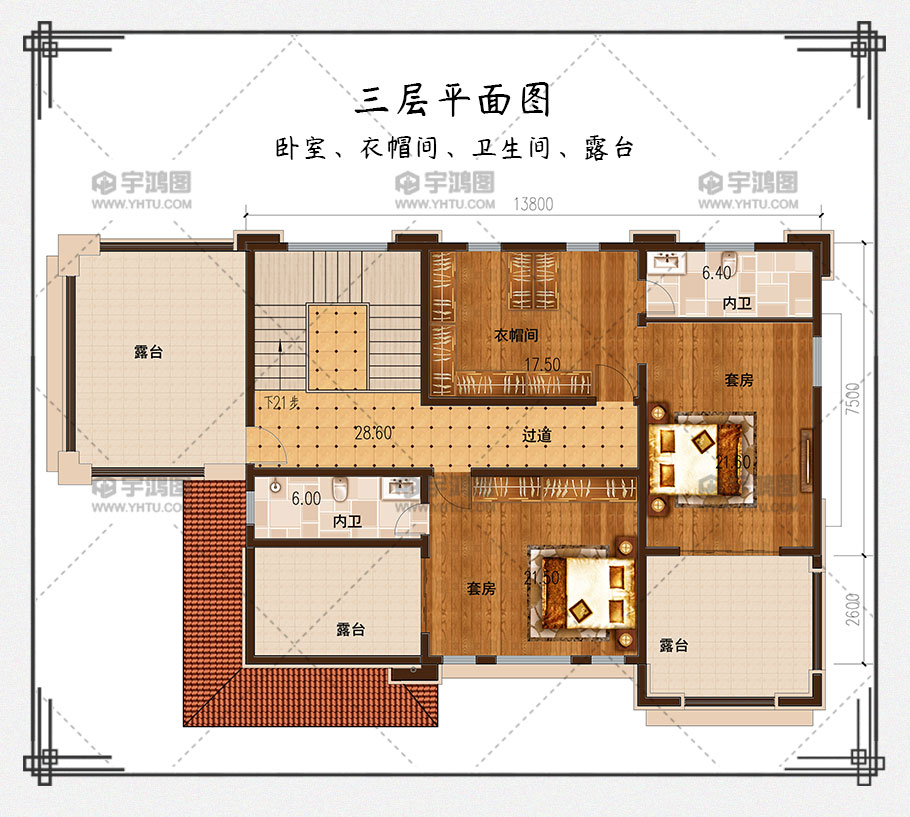 建筑平面圖:一層平面圖,二層平面圖,三層平面圖;