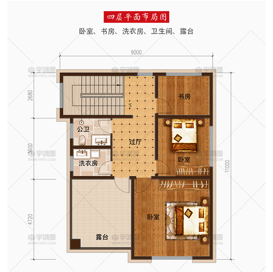 建筑平面圖:一層平面圖,二層平面圖,三層平面圖,四層平面圖;