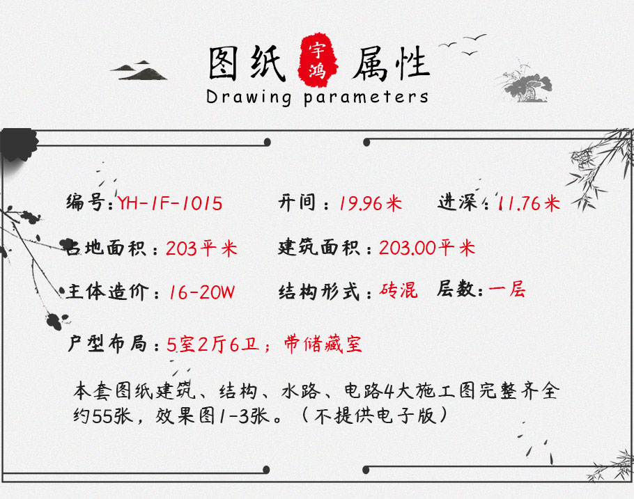 風格:中式 | 層數:一層 | 結構形式:磚混結構 | 圖紙編號:YH-A-1015 |