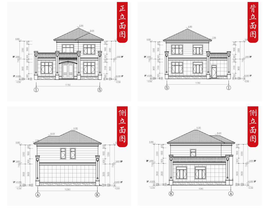 建筑圖: | 建筑平面圖:一層平面圖,二層平面圖; 建筑立面圖:東立面圖,西立面圖,南立面圖,北立面圖,剖面圖; 大樣圖:樓梯詳圖,細部大樣,門窗大樣 |