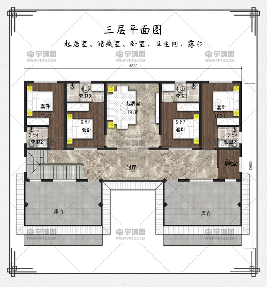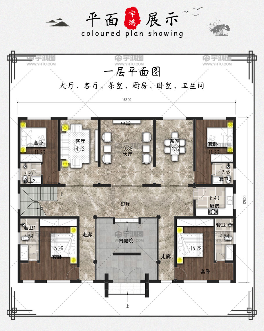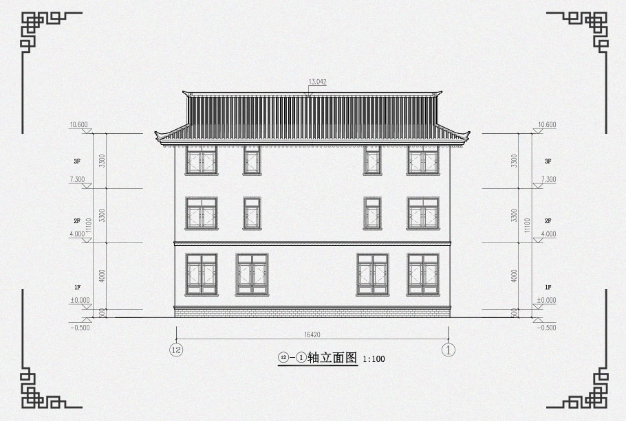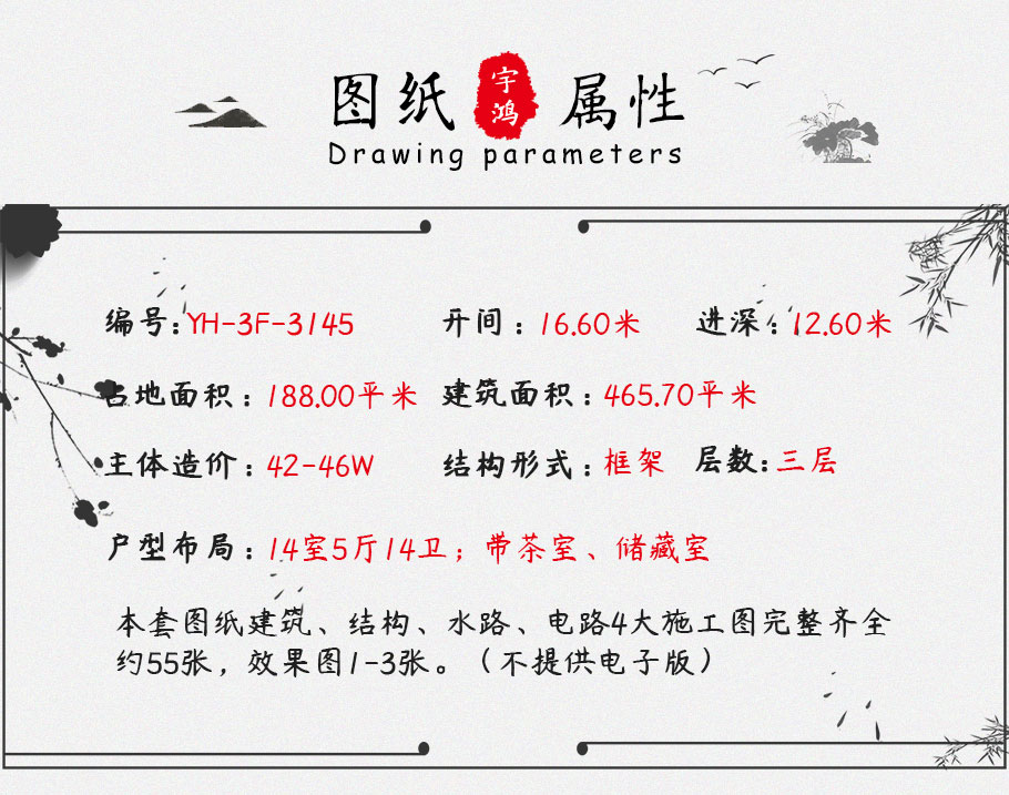 風格:中式 | 層數:三層 | 結構形式:框架結構 | 圖紙編號:YH-A-3145 |