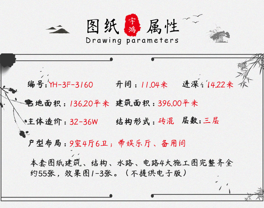 11x14米三層新中式別墅設(shè)計圖紙