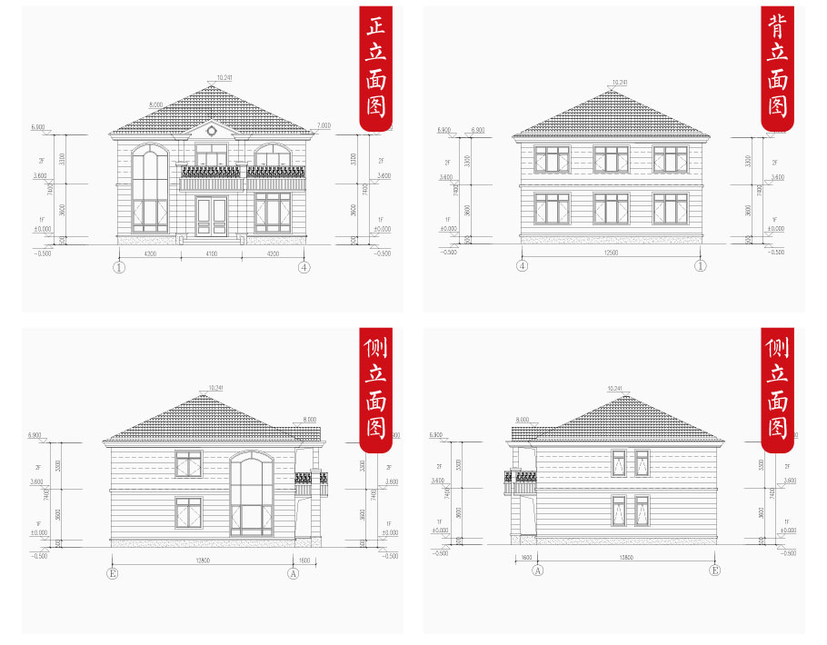 建筑圖: | 建筑平面圖:一層平面圖,二層平面圖; 建筑立面圖:東立面圖,西立面圖,南立面圖,北立面圖,剖面圖; 大樣圖:樓梯詳圖,細部大樣,門窗大樣 |