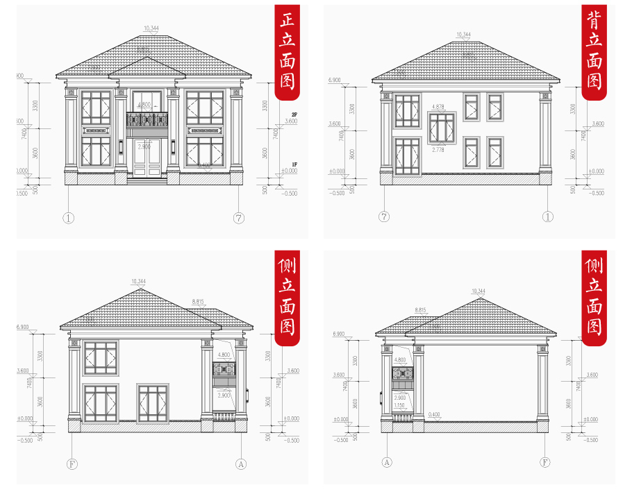 | 建筑圖: | 建筑平面圖:一層平面圖,二層平面圖; 建筑立面圖:東立面圖,西立面圖,南立面圖,北立面圖,剖面圖; 大樣圖:樓梯詳圖,細部大樣,門窗大樣 |