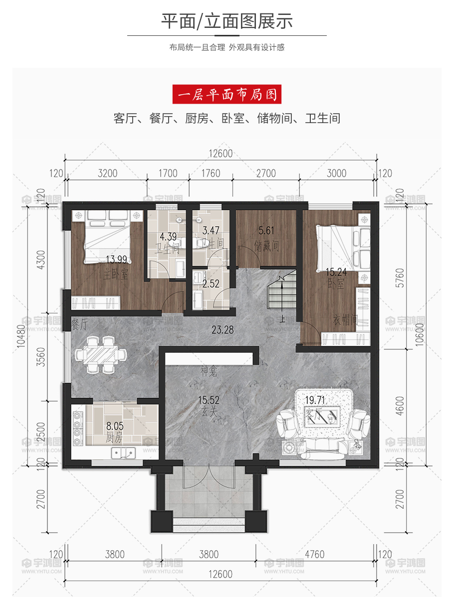 | 開間:12.6米 | 進深:10.48米 | 占地面積:144.05平方米 | 建筑面積:279平方米 |