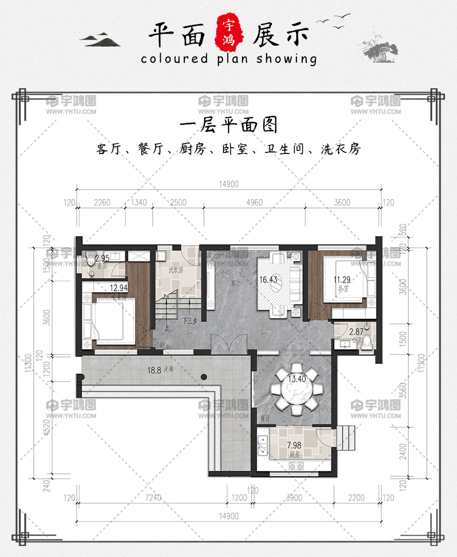 開間:14.9米 | 進深:11.3米 | 占地面積:126.2平方米 | 建筑面積:228.7平方米 |