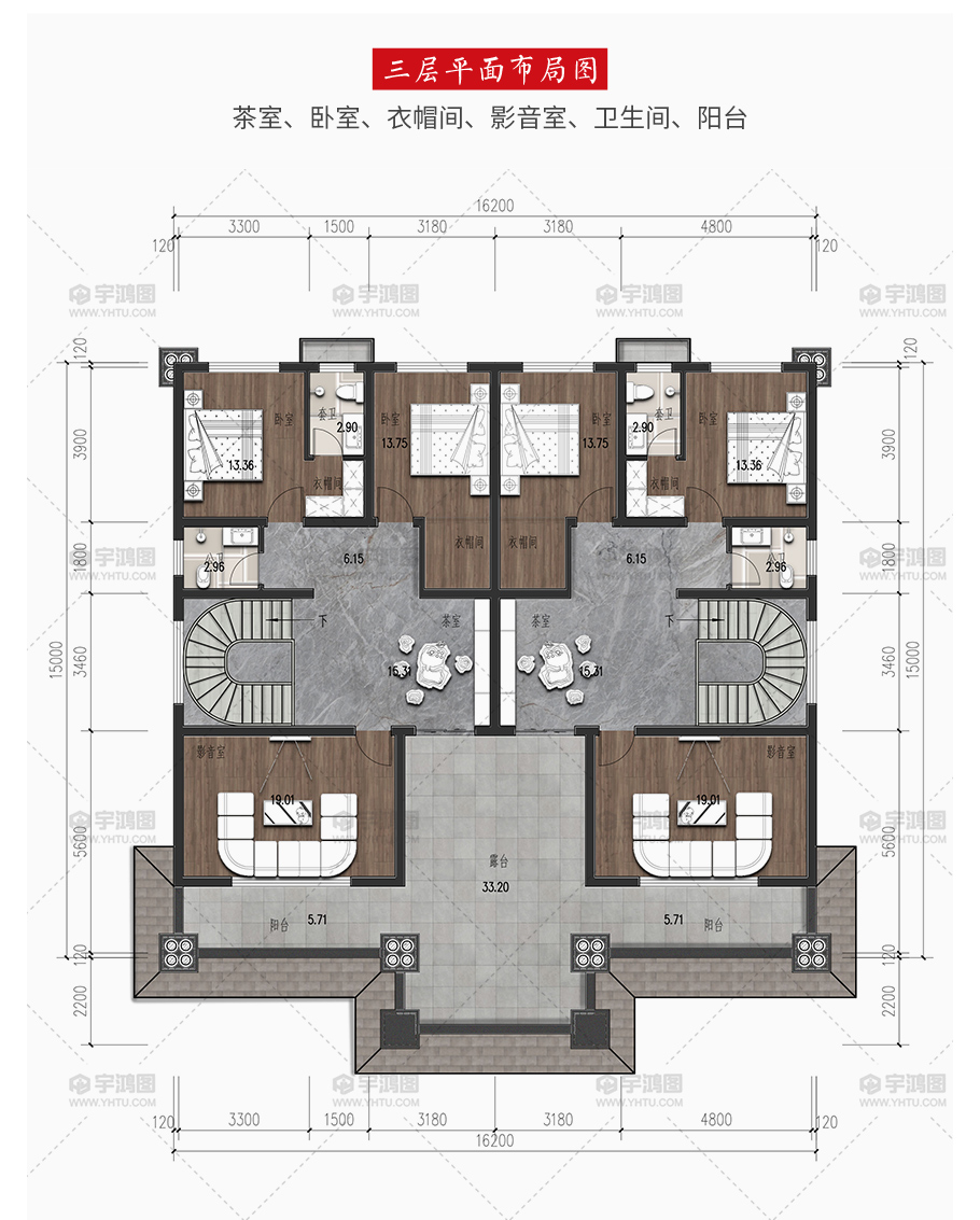 16x15米三層歐式雙拼別墅設(shè)計圖紙