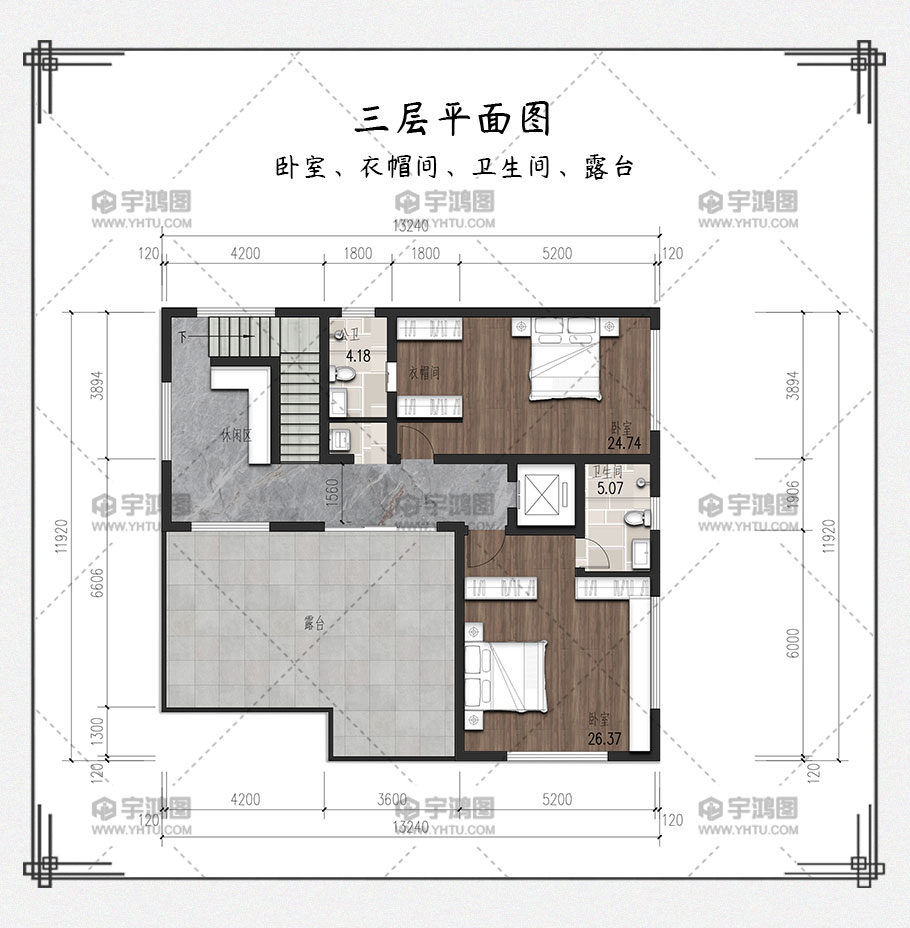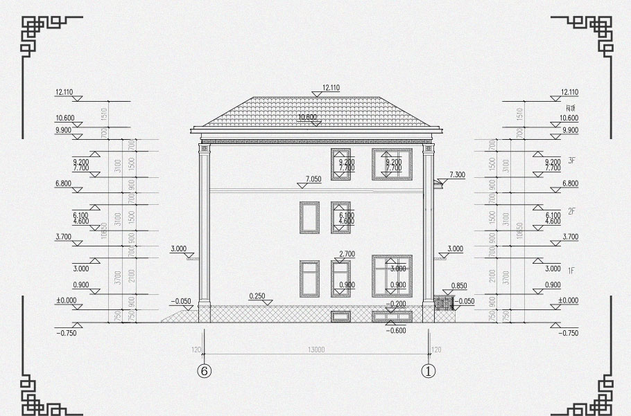 開間:13.24米 | 進深:11.92米 | 占地面積:153.9平方米 | 建筑面積:564.1平方米 |
