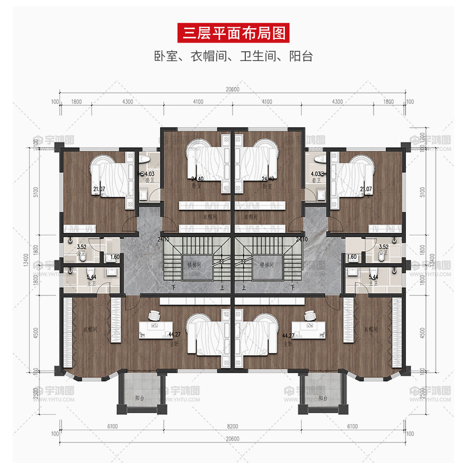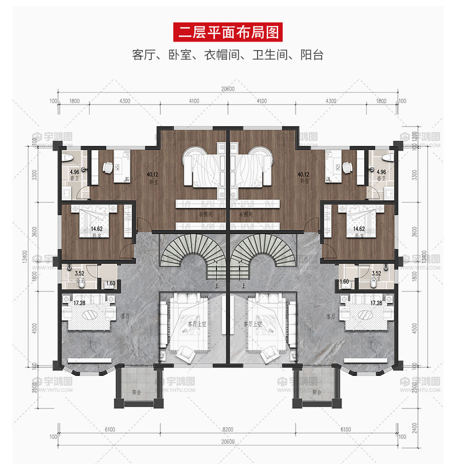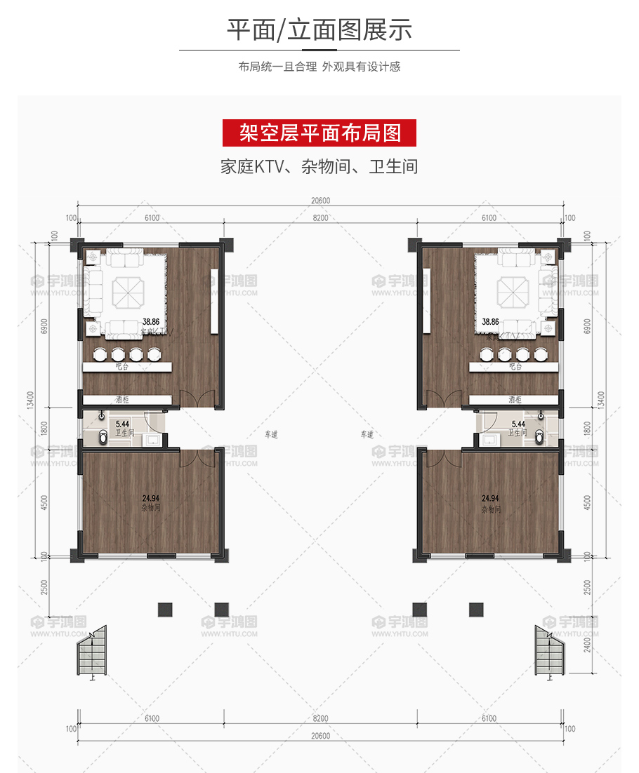 風格:雙拼 | 層數:四層 | 結構形式:框架結構 | 圖紙編號:YH-A-4029 |