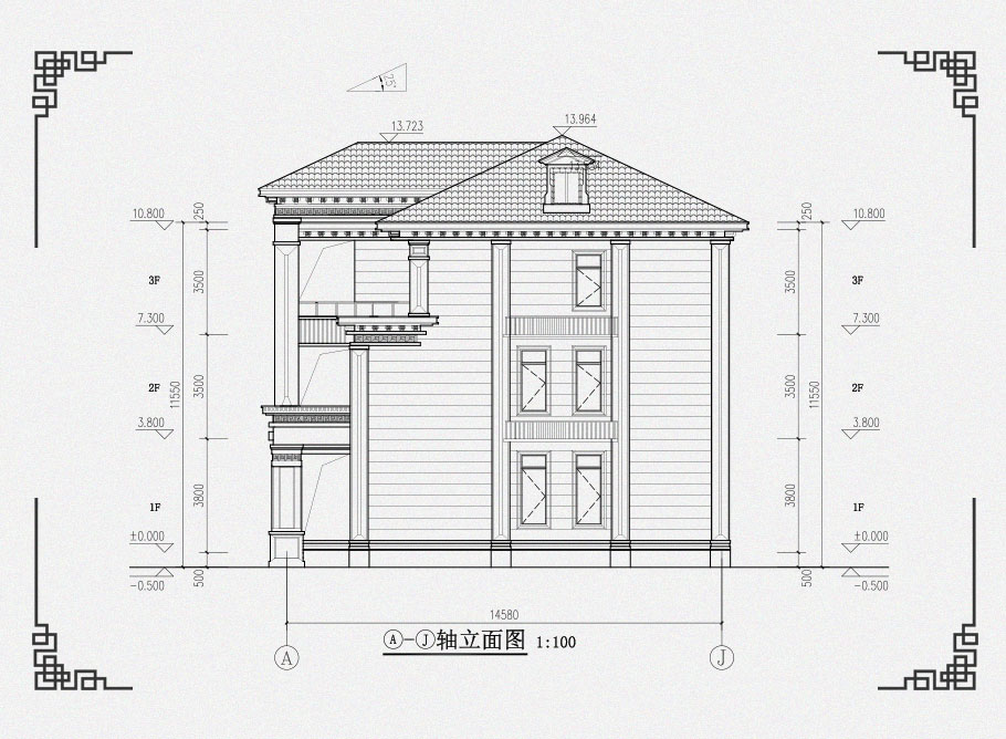 建筑圖: | 建筑平面圖:一層平面圖,二層平面圖,三層平面圖; 建筑立面圖:東立面圖,西立面圖,南立面圖,北立面圖,剖面圖; 大樣圖:樓梯詳圖,細(xì)部大樣,門(mén)窗大樣 |