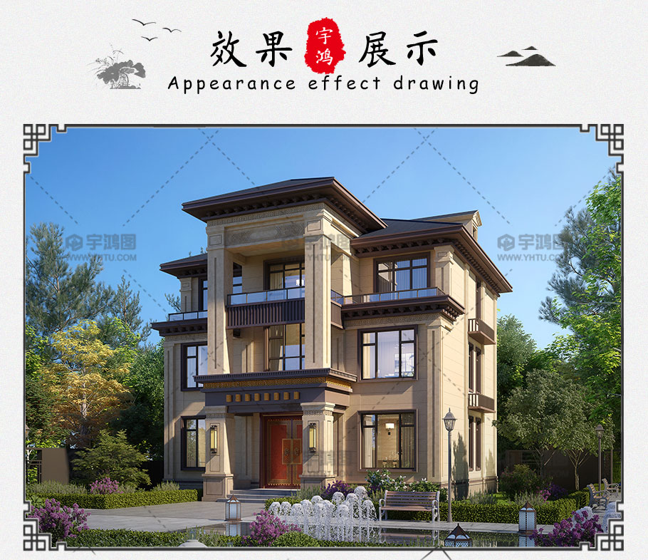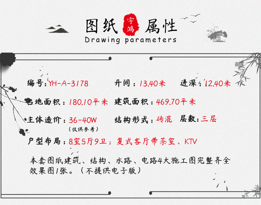 風(fēng)格:新中式 | 層數(shù):三層 | 結(jié)構(gòu)形式:磚混結(jié)構(gòu) | 圖紙編號(hào):YH-A-3178 |