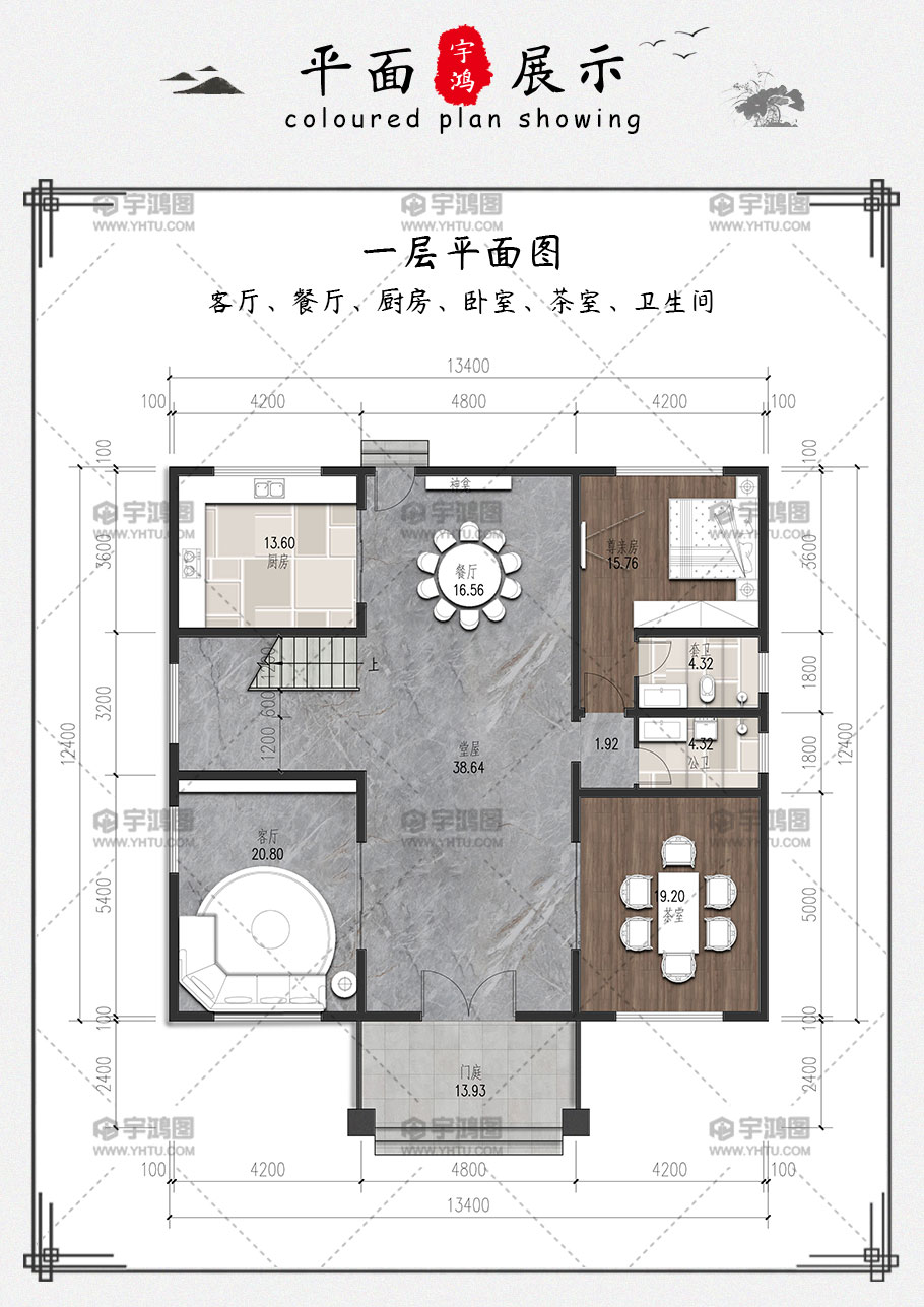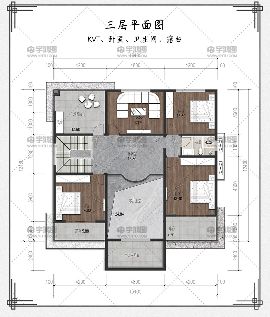 開(kāi)間:13.4米 | 進(jìn)深:12.4米 | 占地面積:180.1平方米 | 建筑面積:469.7平方米 |