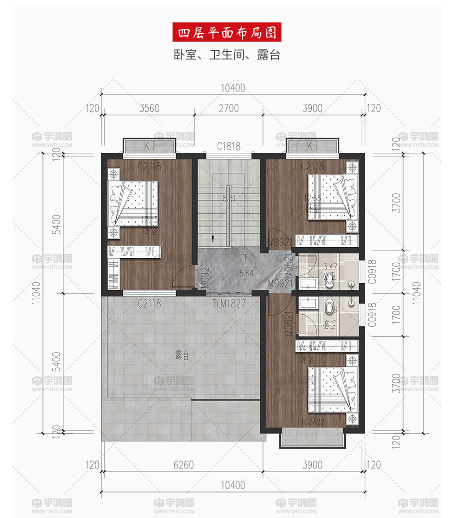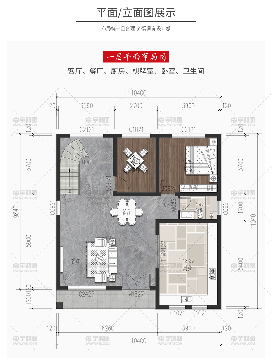 開間:10.4米 | 進深:11.04米 | 占地面積:114.8平方米 | 建筑面積:397.8平方米 |