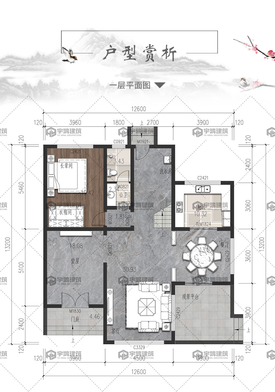 開間:12.6米 | 進深:13.2米 | 占地面積:150平方米 | 建筑面積:337.7平方米 |