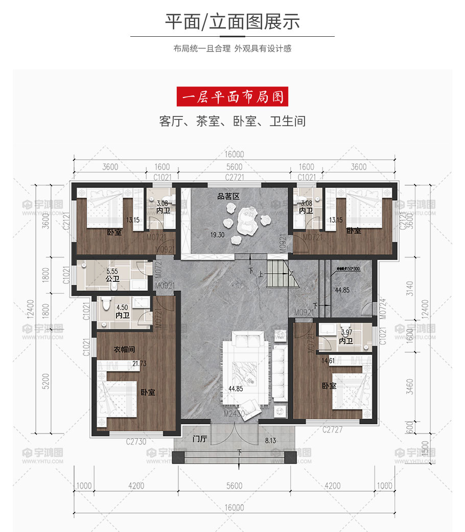 開間:16米 | 進深:12.4米 | 占地面積:191.7平方米 | 建筑面積:350.44平方米 |
