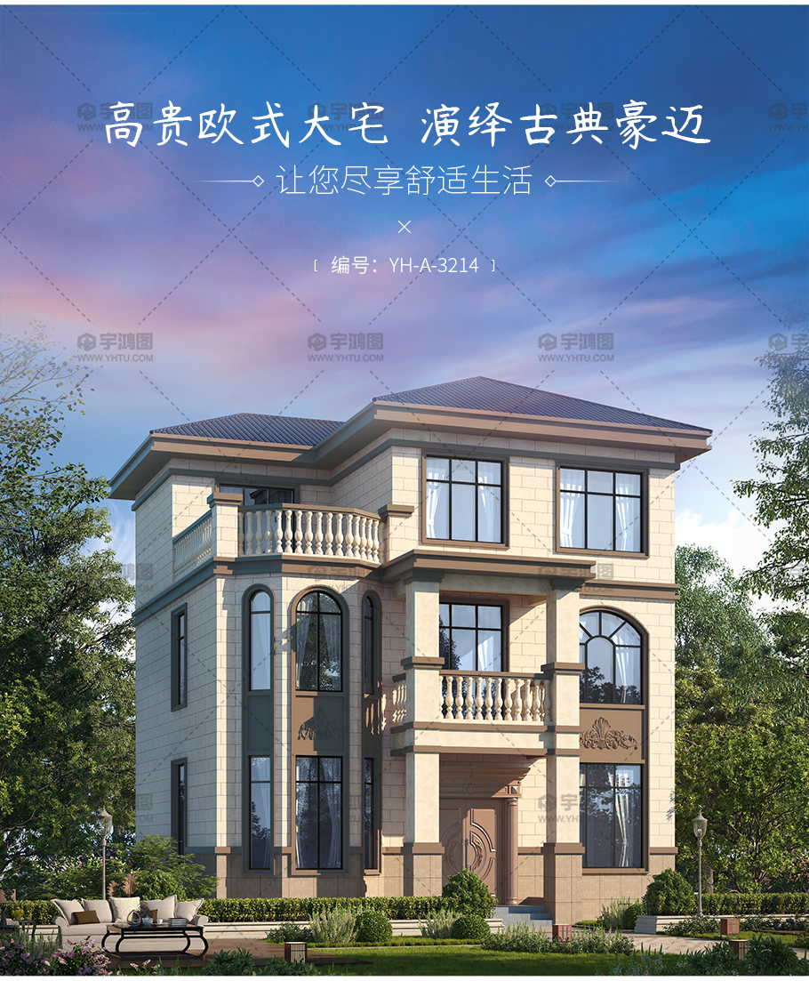 風格:歐式 | 層數:三層 | 結構形式:磚混結構 | 圖紙編號:YH-A-3214 |