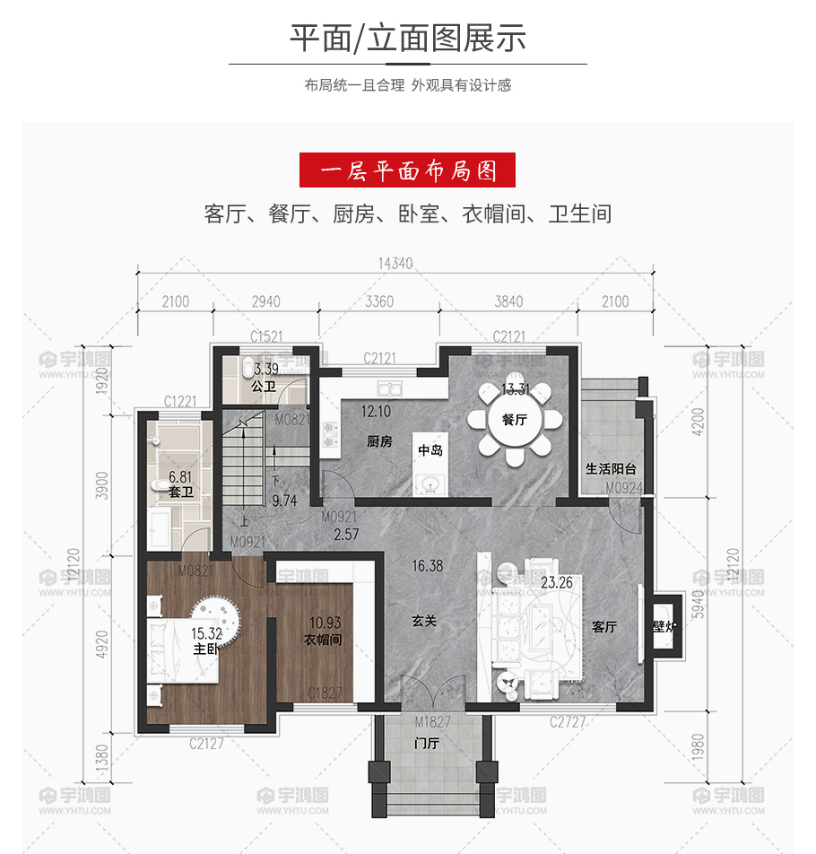 開間:14.34米 | 進深:12.12米 | 占地面積:145.65平方米 | 建筑面積:368平方米 |