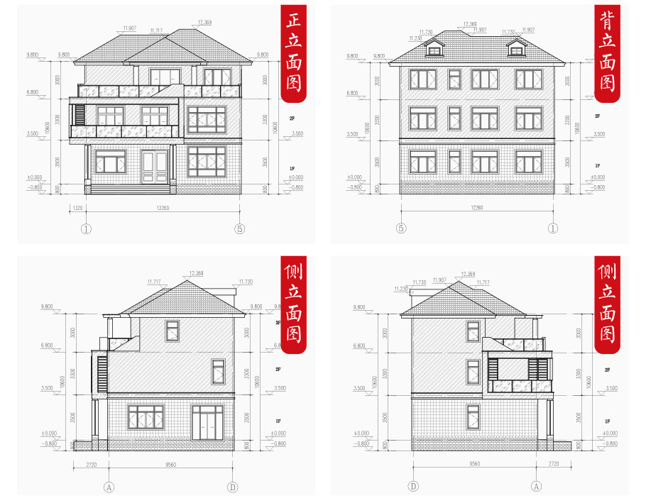 建筑圖: | 建筑平面圖:一層平面圖,二層平面圖,三層平面圖; 建筑立面圖:東立面圖,西立面圖,南立面圖,北立面圖,剖面圖; 大樣圖:樓梯詳圖,細部大樣,門窗大樣 |