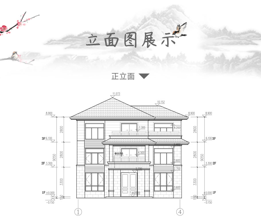 風格:新中式 | 層數:三層 | 結構形式:磚混結構 | 圖紙編號:YH-A-3219 |