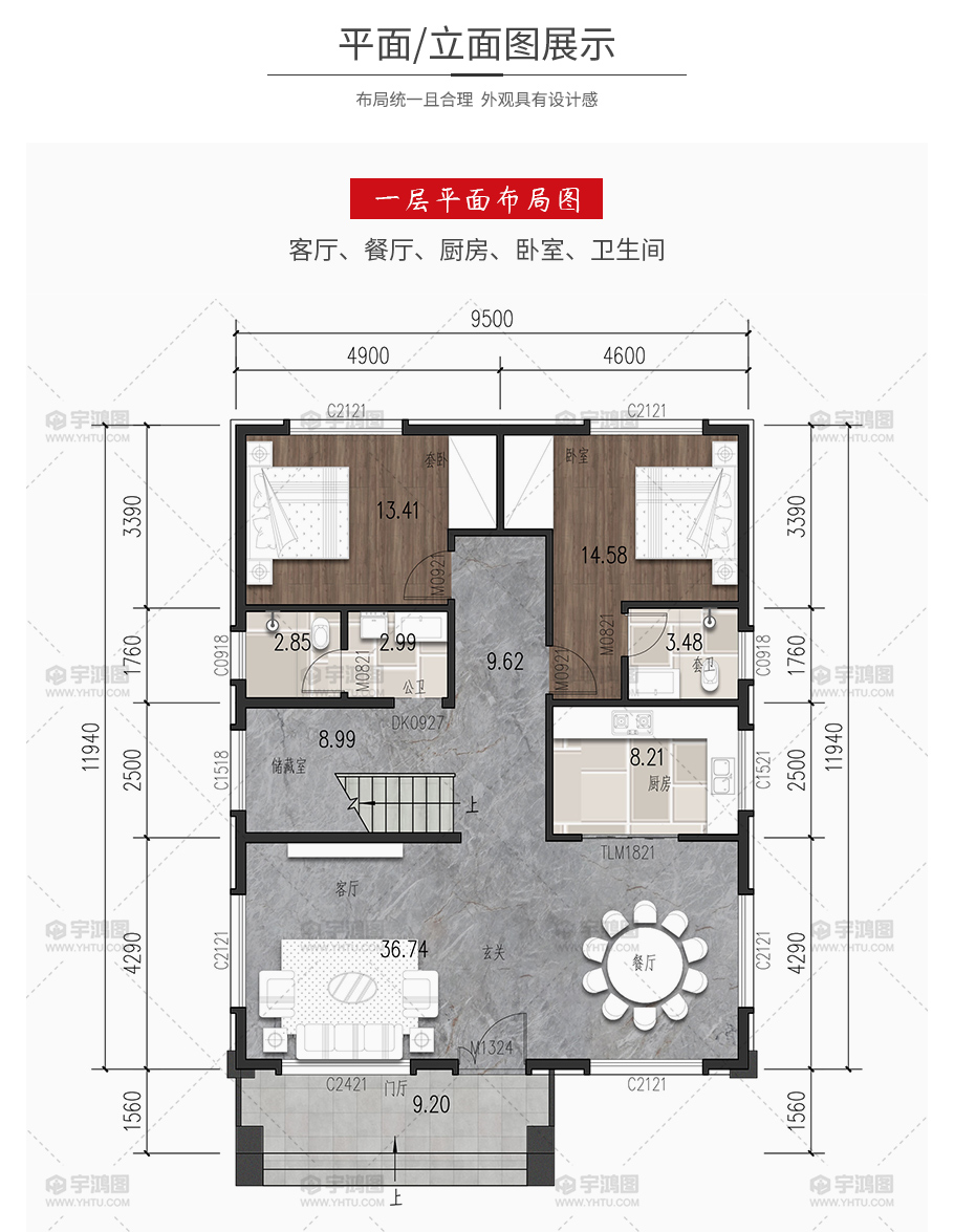 開間:9.5米 | 進深:11.94米 | 占地面積:122.6平方米 | 建筑面積:234平方米 |