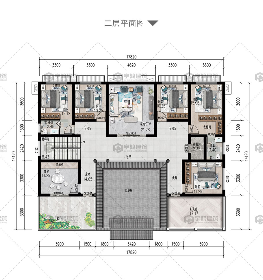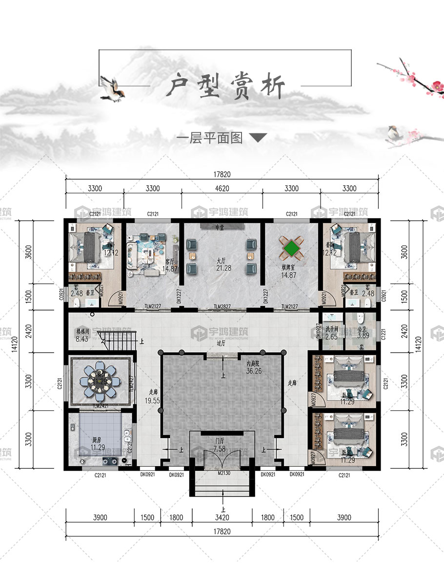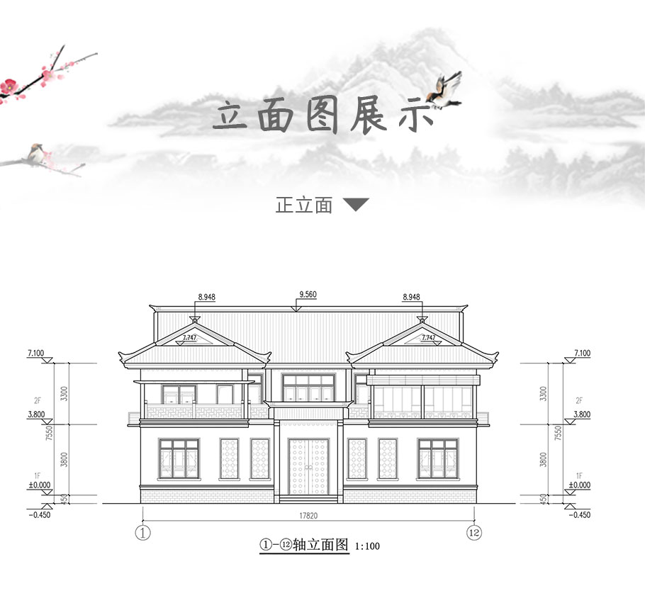 成品圖紙>260平帶陽光房中式別墅設(shè)計(jì)圖紙