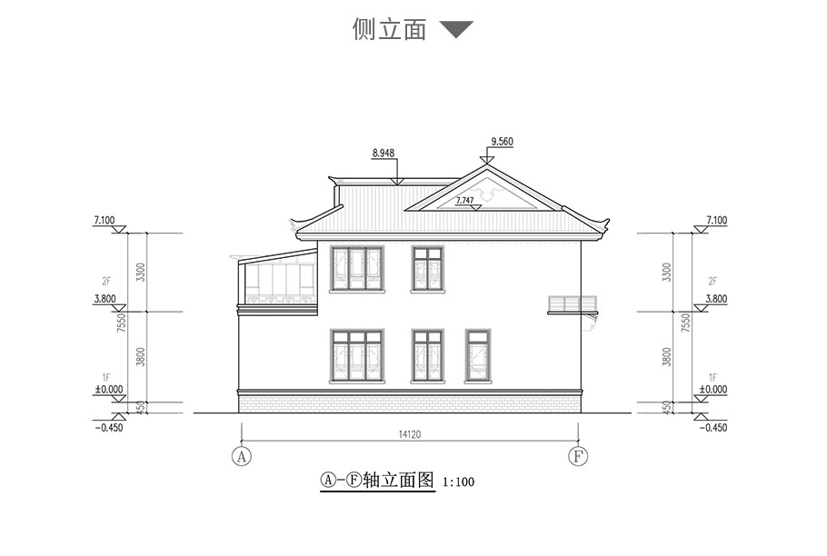 建筑立面圖:東立面圖,西立面圖,南立面圖,北立面圖,剖面圖;