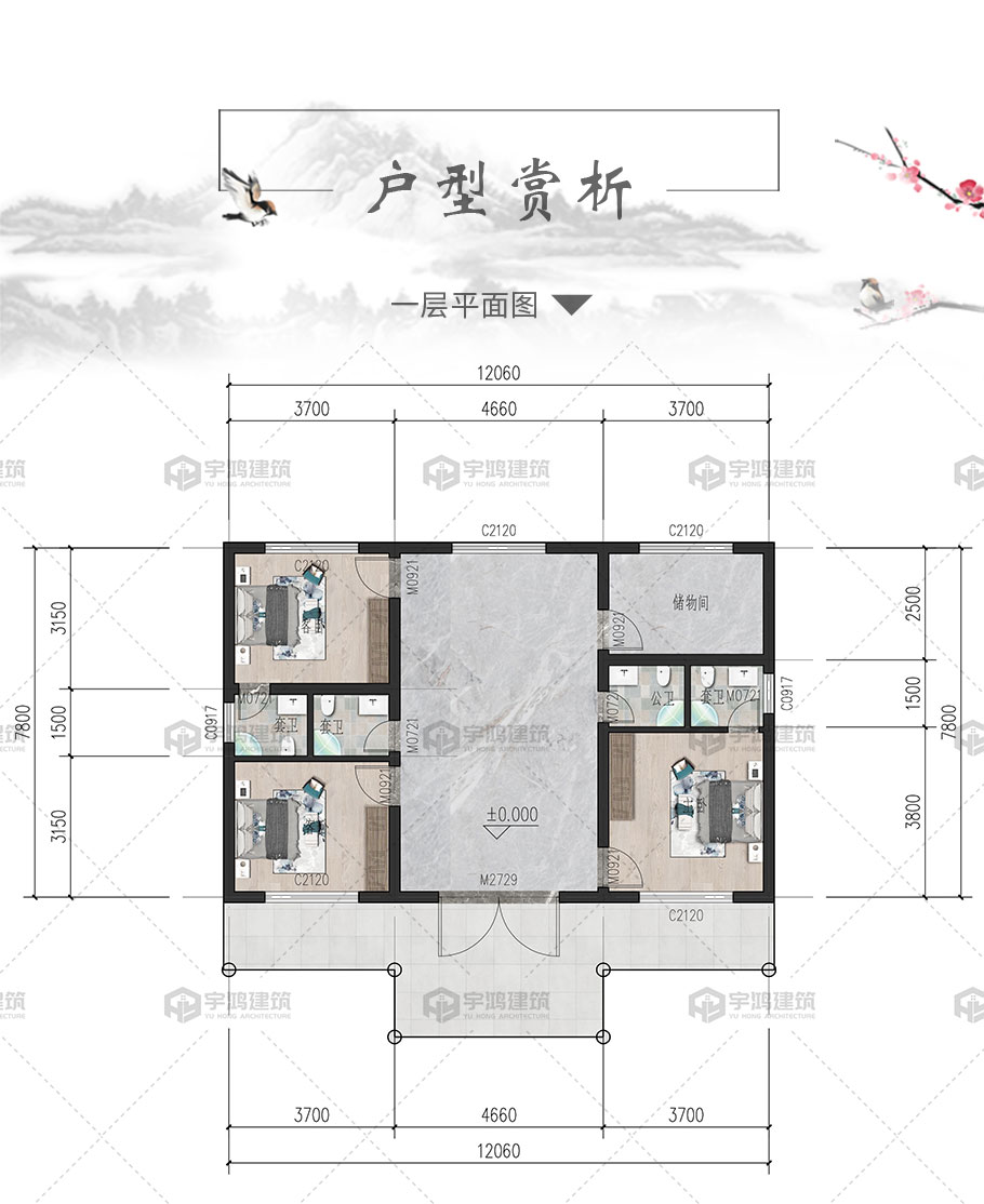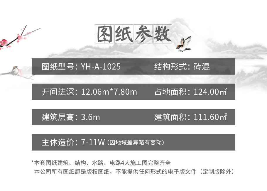 風格:中式 | 層數:一層 | 結構形式:磚混結構 | 圖紙編號:YH-A-1025 |