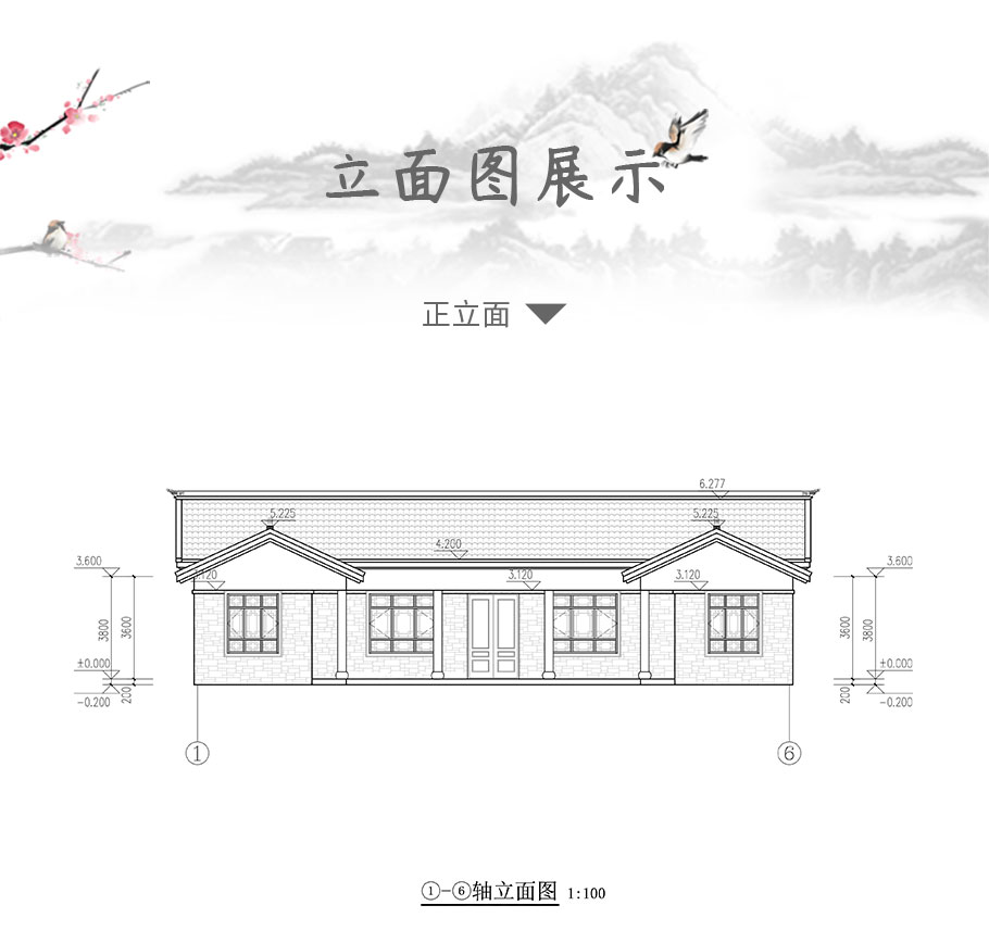 風格:中式 | 層數:一層 | 結構形式:磚混結構 | 圖紙編號:YH-A-1026 |