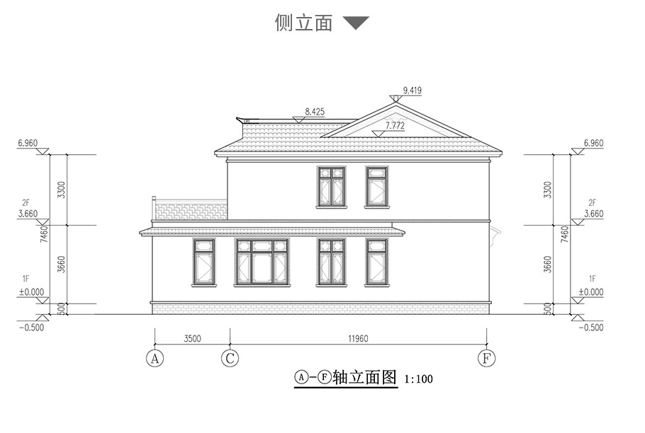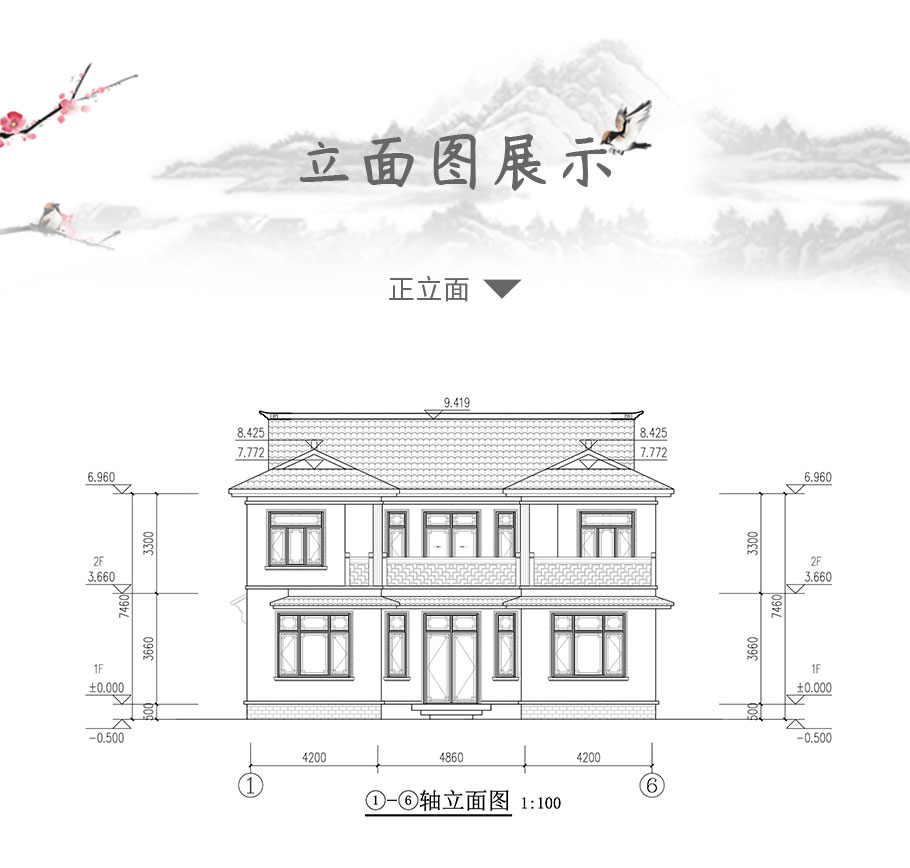 建筑圖: | 建筑平面圖:一層平面圖,二層平面圖; 建筑立面圖:東立面圖,西立面圖,南立面圖,北立面圖,剖面圖; 大樣圖:樓梯詳圖,細部大樣,門窗大樣 |